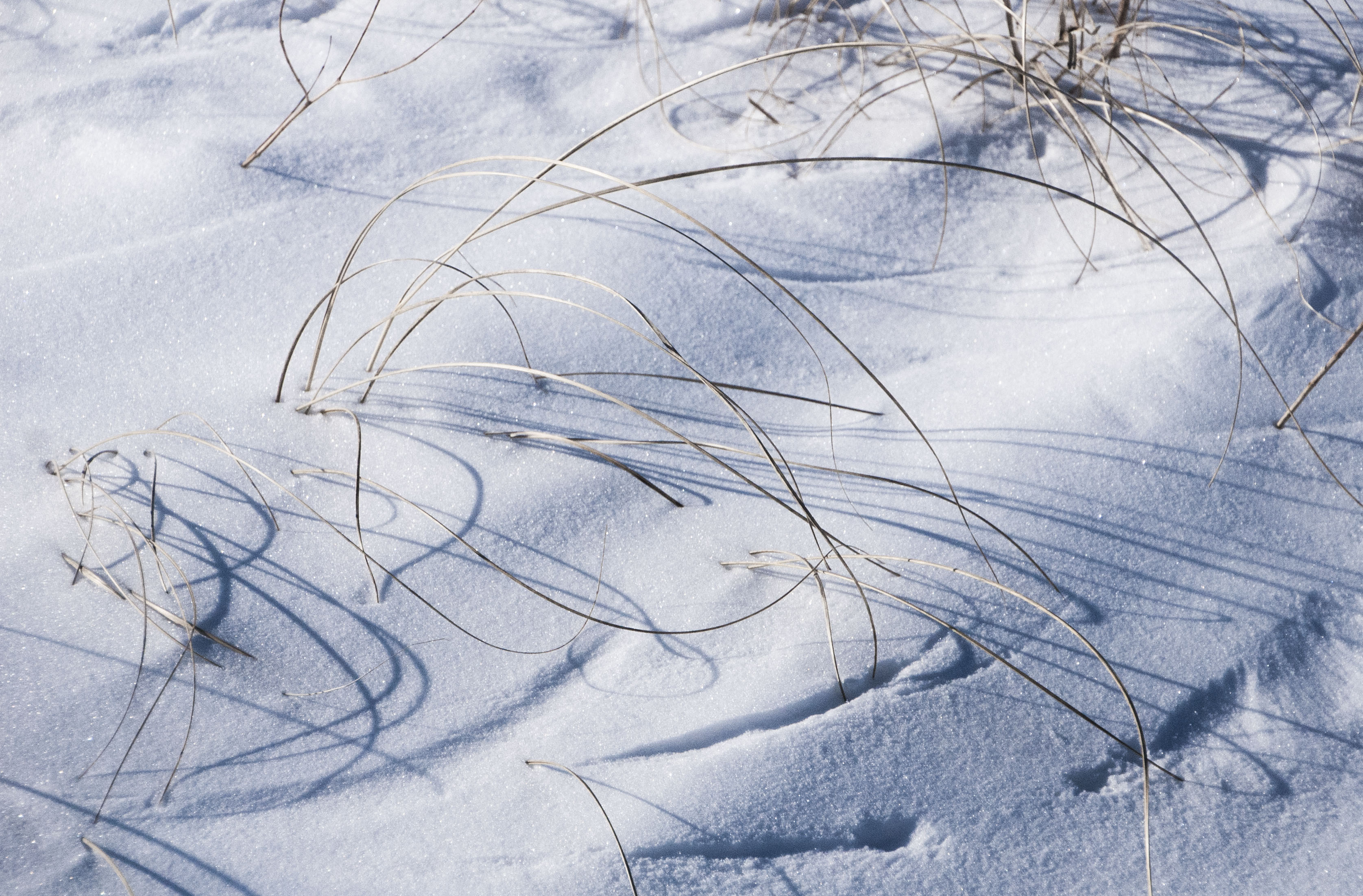 A week or so later, on a late afternoon, the hush of both the prairie and wind had returned. There on a clear and windless day, in the captured depths of snow, in both stem and shadow, were wind poems that spoke of silent secrets.