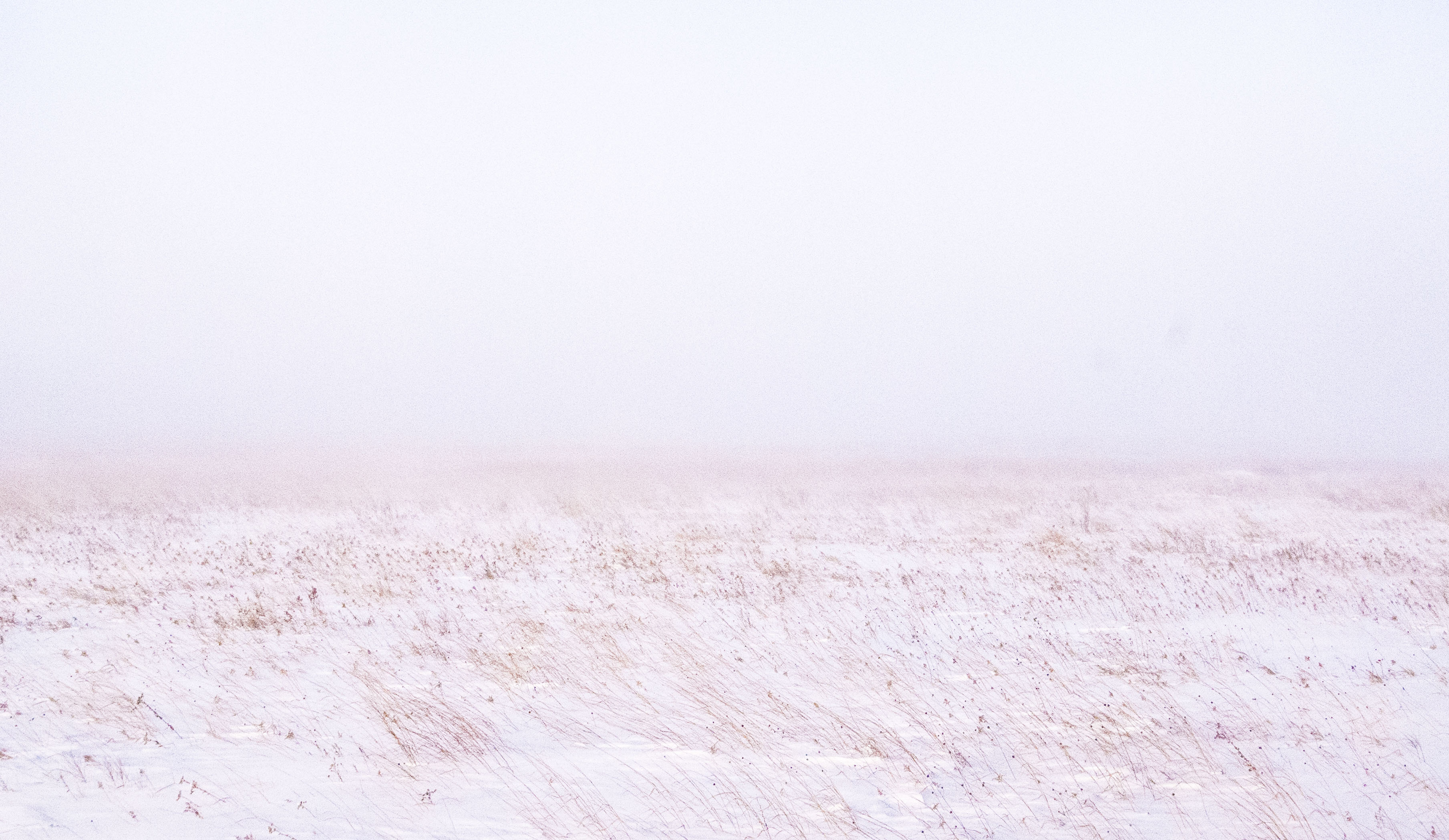 On one of those forays, with the sun muted by driven snow, the grasses of the Clinton prairie yielded to the winds, yet captured enough snow to create sea-like drifts. Enough snow was being captured that you could see a depth of perhaps a hundred yards … which was impossible on adjacent tilled fields. It was a wild moment in the “rest” — a wail that could cause one to lose their mind with a long exposure, for this blow continued for two to three continuous days. Cold and continuous.