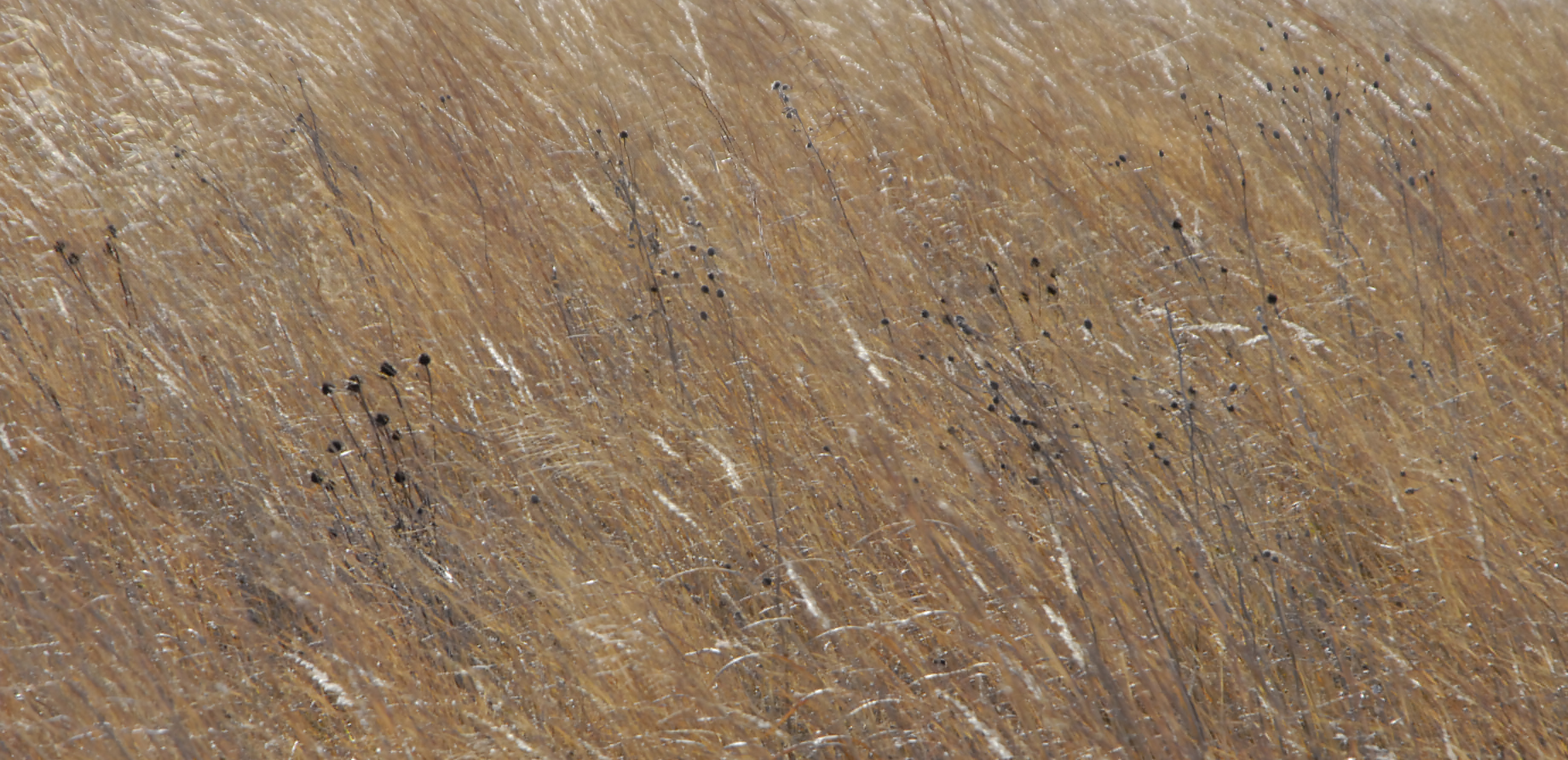 Indian Grass and heads of cone flowers moved by prairie winds.