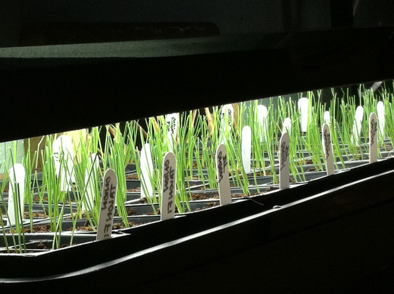 Seed starting has commenced, and the onions are up and growing nicely. I’ve got three varieties this year: Long Red Florence for the tasty fresh-eating and kabob onions of summer, as well as my standby Talon F1 yellow storage onion (which I’ve gotten from Territorial Seed for a few years, but now I see High Mowing has it, too). A new yellow storage onion for this year is the open pollinated Dakota Tears, developed by Prairie Road Organic Seed. They are looking really fine.