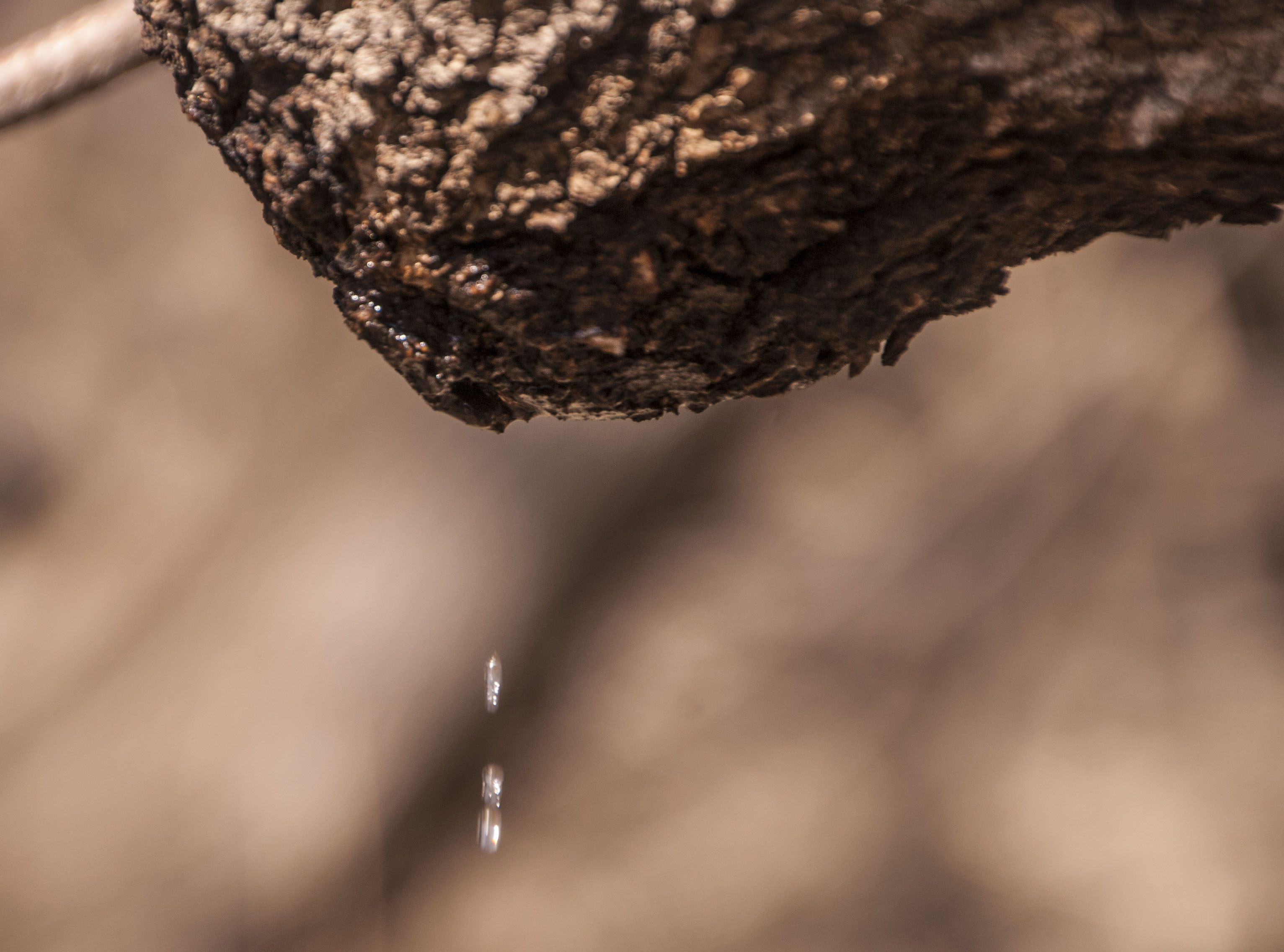 Like pearls, sap drips from the old and bent box elder.