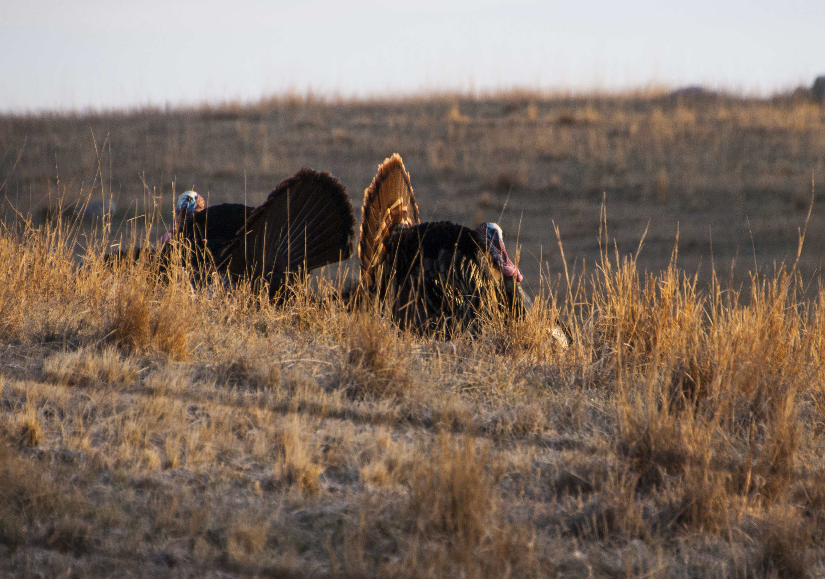 In the nearby prairies we hear the “barks” of Pheasants, and Wild Turkeys are strutting in display. Trying to capture a display has been almost cartoonish. On two different early mornings I passed strutting turkeys in full display just down the road, and both times I was without a camera. On Earth Day morning, though, when a fog hovered over the wetlands and in the river valley, I was finally able to capture an image of two toms just over a ridge as they tried to woo nearby hens.