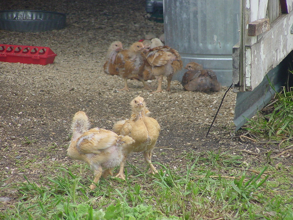 And the poor pullets? Well, the six I’ve collectively nicknamed “juvenile delinquents” are now as big as Spurz-the-rooster, and bigger than the Silkies. But it’s not size that matters at this point–it’s sheer meanness! One of the new-crop Americanas is almost as big now as Gilda and Frannie, and she lords it over her brooder-mates. But when it comes feeding time, she hasn’t yet developed the “pluck” to challenge the higher-ups–and especially the middle management Silkies.