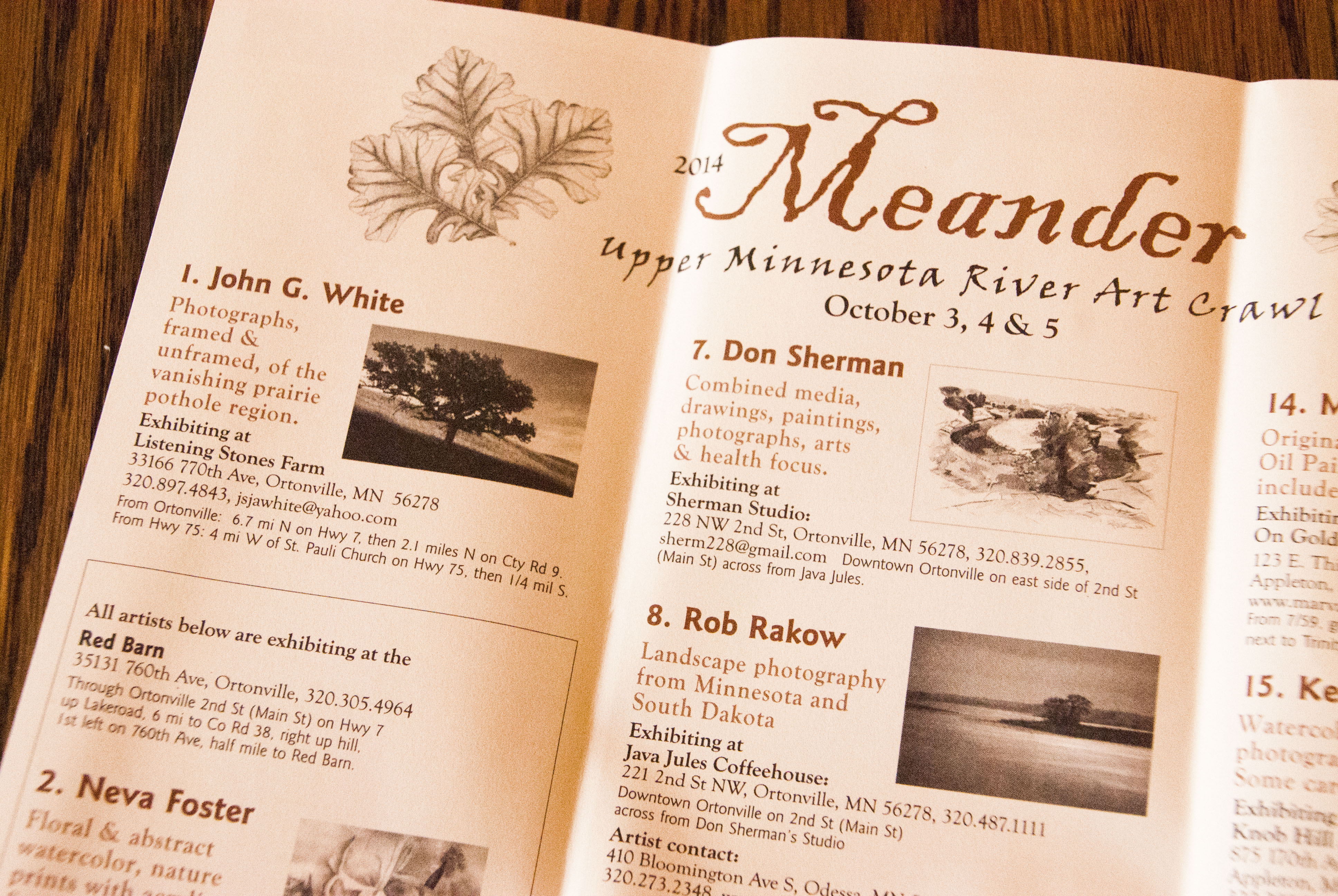 Over the past several months this has all been quite new and exciting. First was being accepted as one of the 45 artists to exhibit on the Meander, then came the various meetings where we mingled with many of the artists we’ve known over the years. However humbling, it was nice being considered a peer. Then the brochure arrived and there it was, officially, in brown and black …