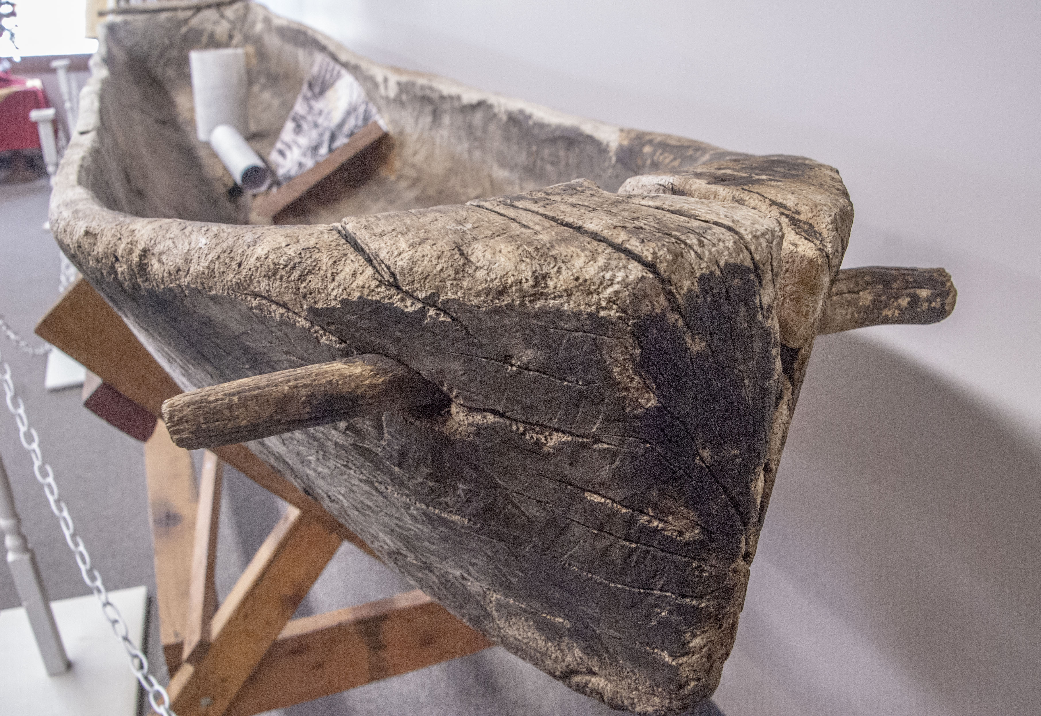 Soon, too, regional artist Malena Handeen, who with her husband, Mike Jacobs, owns the land close to where Ole Torgerson found the dugout, has created a riverine mural she has been commissioned to paint on a bare wall inside the Village office. Lynne said a permanent and more stately display stand will hold the dugout in front of Handeen’s mural. “It should look really nice, and we think it will also look authentic to the time,” Lynne said.