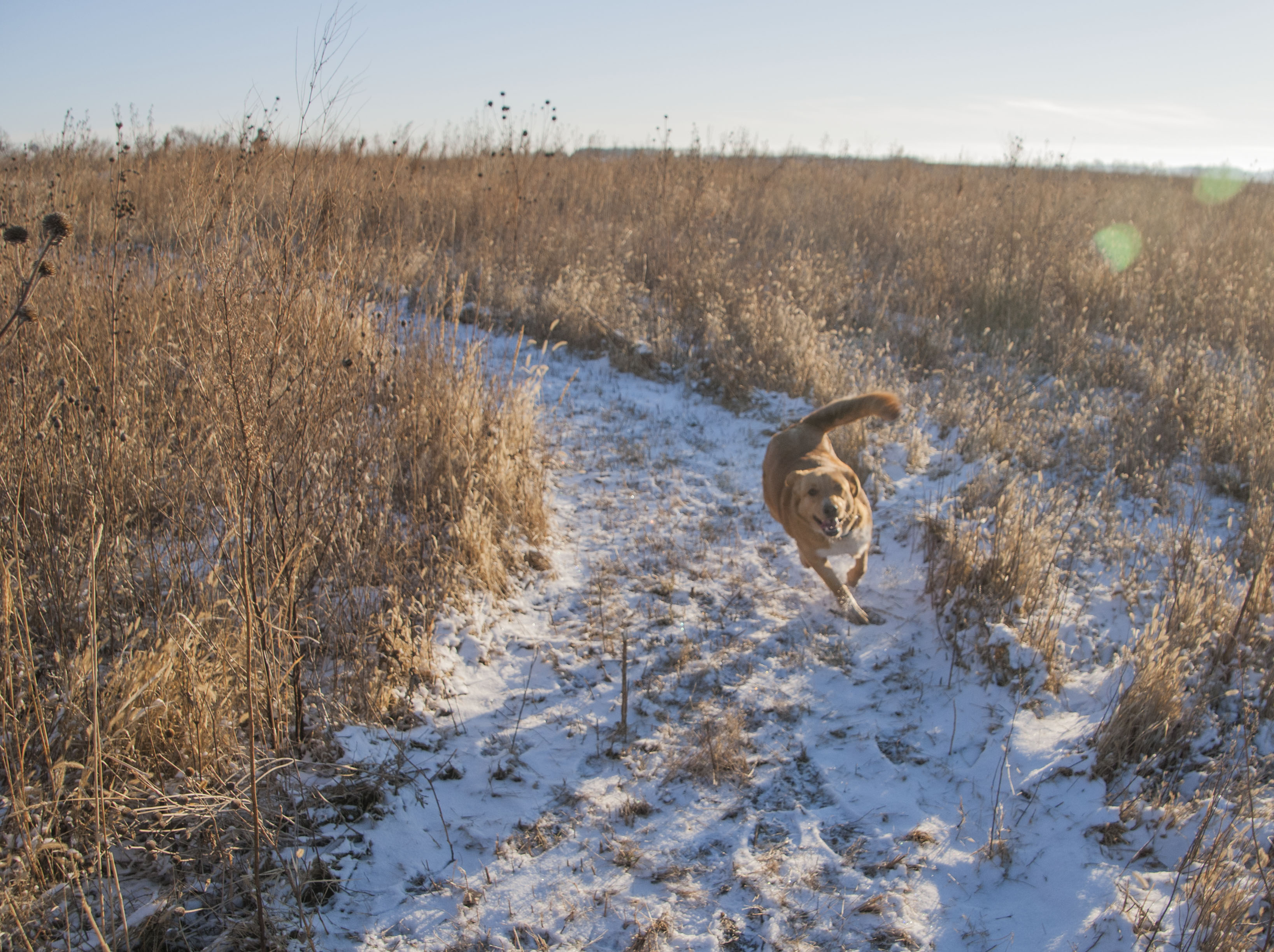 That winding path has now become a focal point thanks to adopting our new mutt, Joe Pye. Twice each day since, we’ve taken Joe Pye and Vega, our resident “hound,” on exercise laps on Rebecca’s prairie loops. We have our “upper” prairie on the northern portion of the farm, which begins at the foot of the orchard and winds around above the grove; or the “lower” prairie, which is mostly below the farm yard and main garden. Naturally, she connected the loops between the upper and lower prairies.
