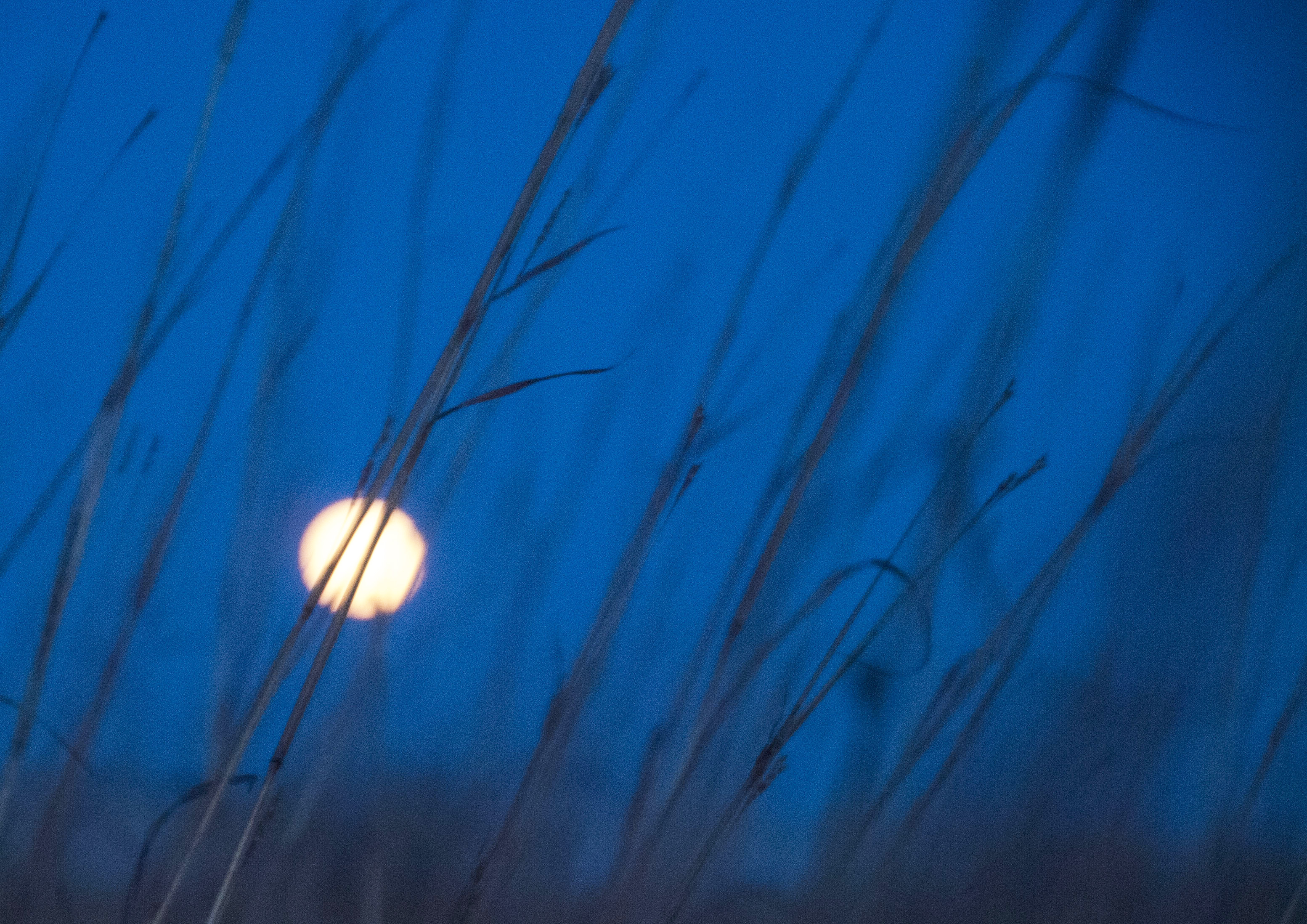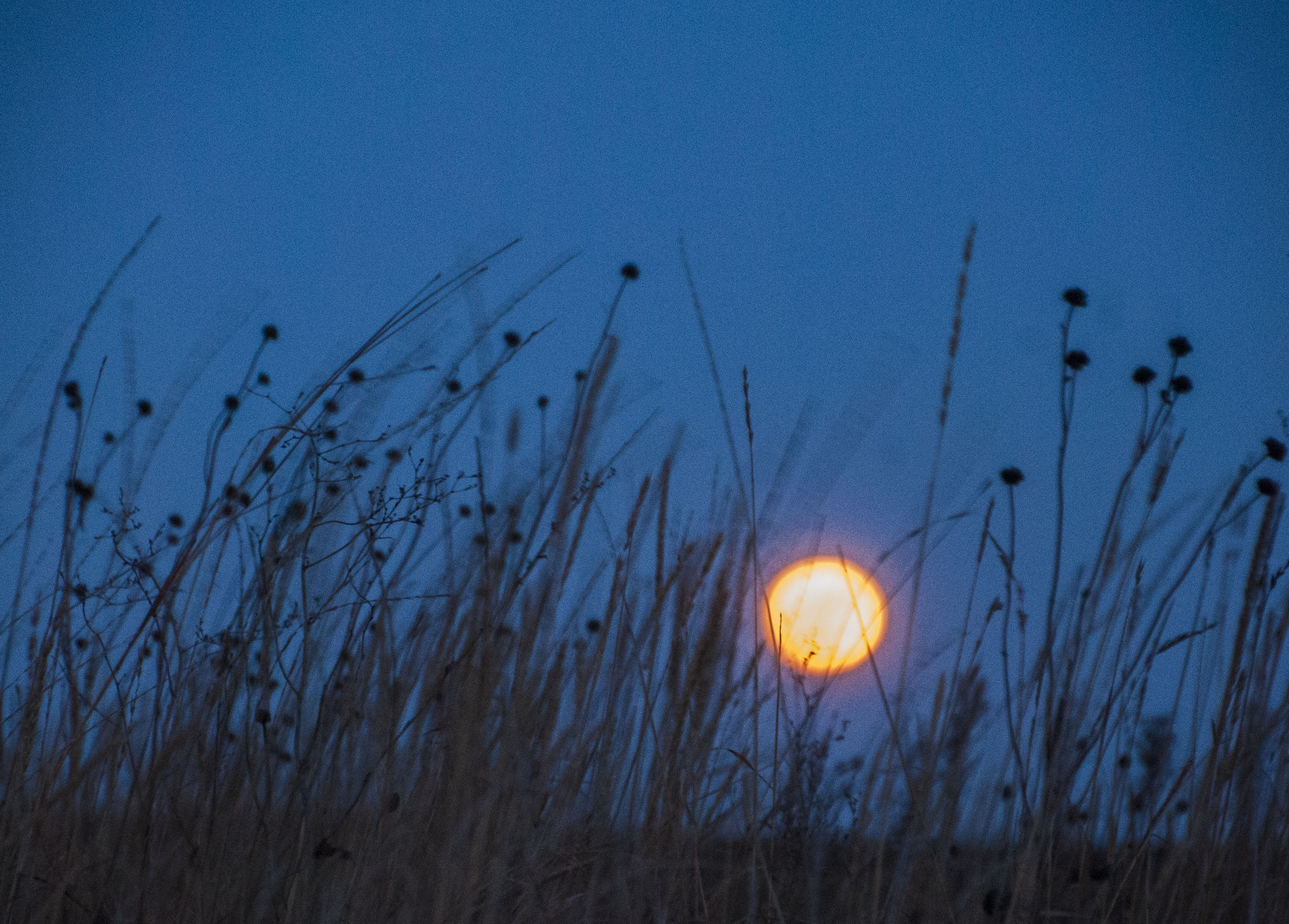 One must move quickly with a rising moon, not unlike a coyote in search of a meal in the prairie. It took perhaps 90 seconds to get down the road to the savanna … however, it was not to be. The moon was nowhere to be seen. The rise was much too far to the left. Disappointed, I started back toward the house where Rebecca was in the midst of preparing a great dinner, and one I was hesitant to leave despite her assurances that she would save some for me. At the end of the section a sudden thought came about a WMA with a wonderfully rich growth of big bluestem.