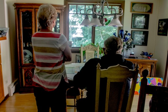 Many times a day Robbie and Harland pause to watch their active bird feeders.