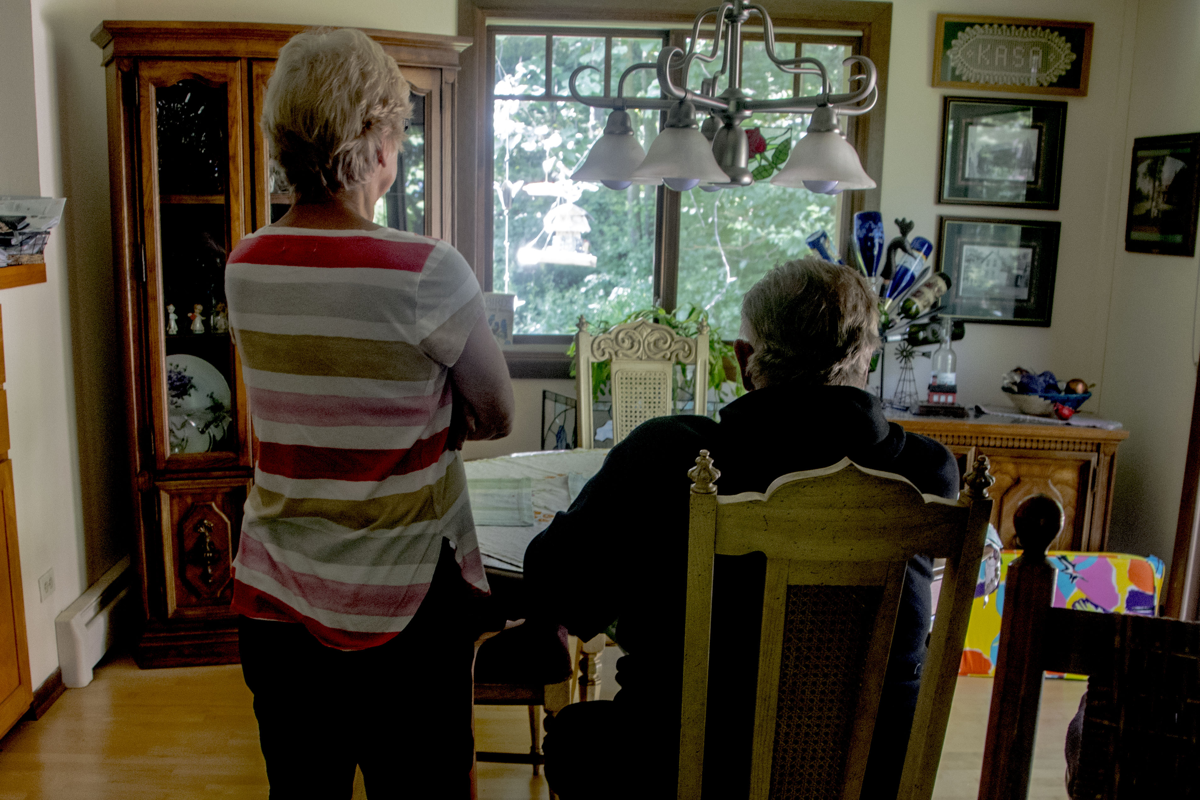 Many times a day Robbie and Harland pause to watch their active bird feeders.