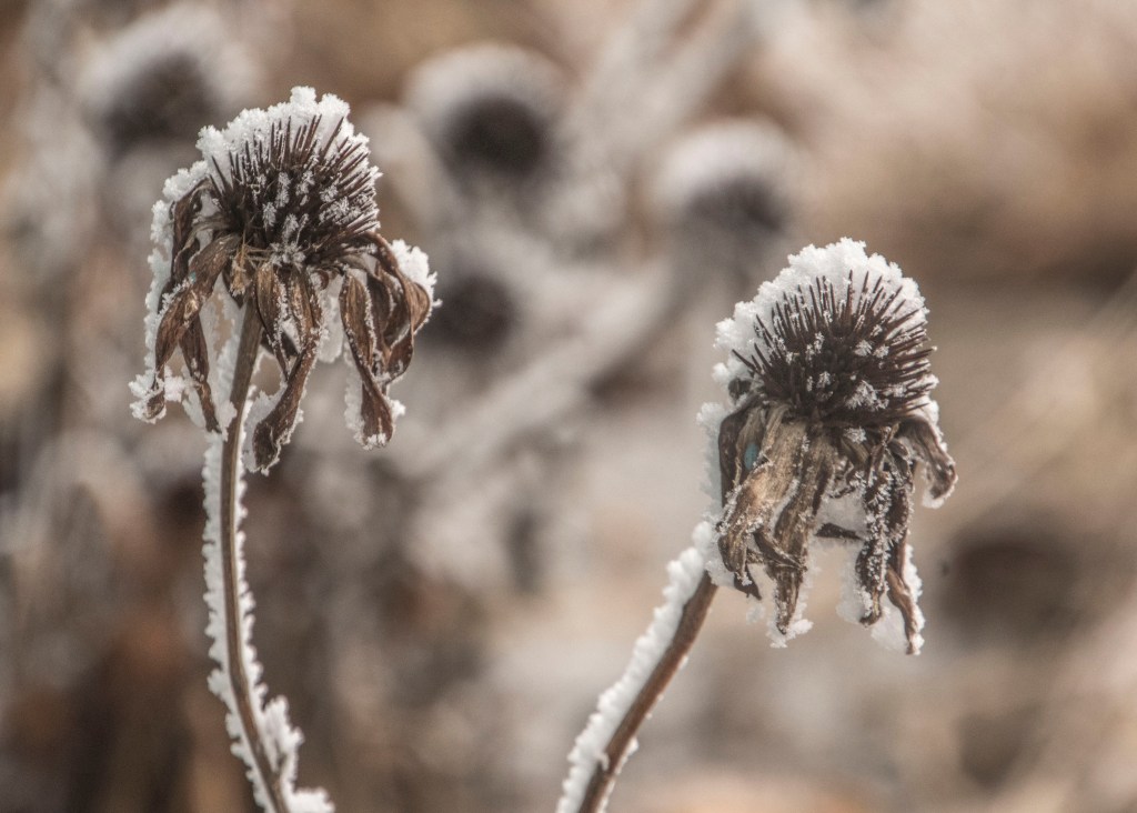 All of which begs for a journey within the ancient and unsolved, where those stark heavy branches of oaks and cottonwoods are suddenly jeweled, where the nuded bulbs of solitary cone flowers glisten as if donning a queen’s crown, where leaves of big bluestem curl poetically within the depths of a prairie, dotted perfectly with frost as surely as they’re coated with poetic drops of dew in a summer sunrise. All magical and mysterious moments.