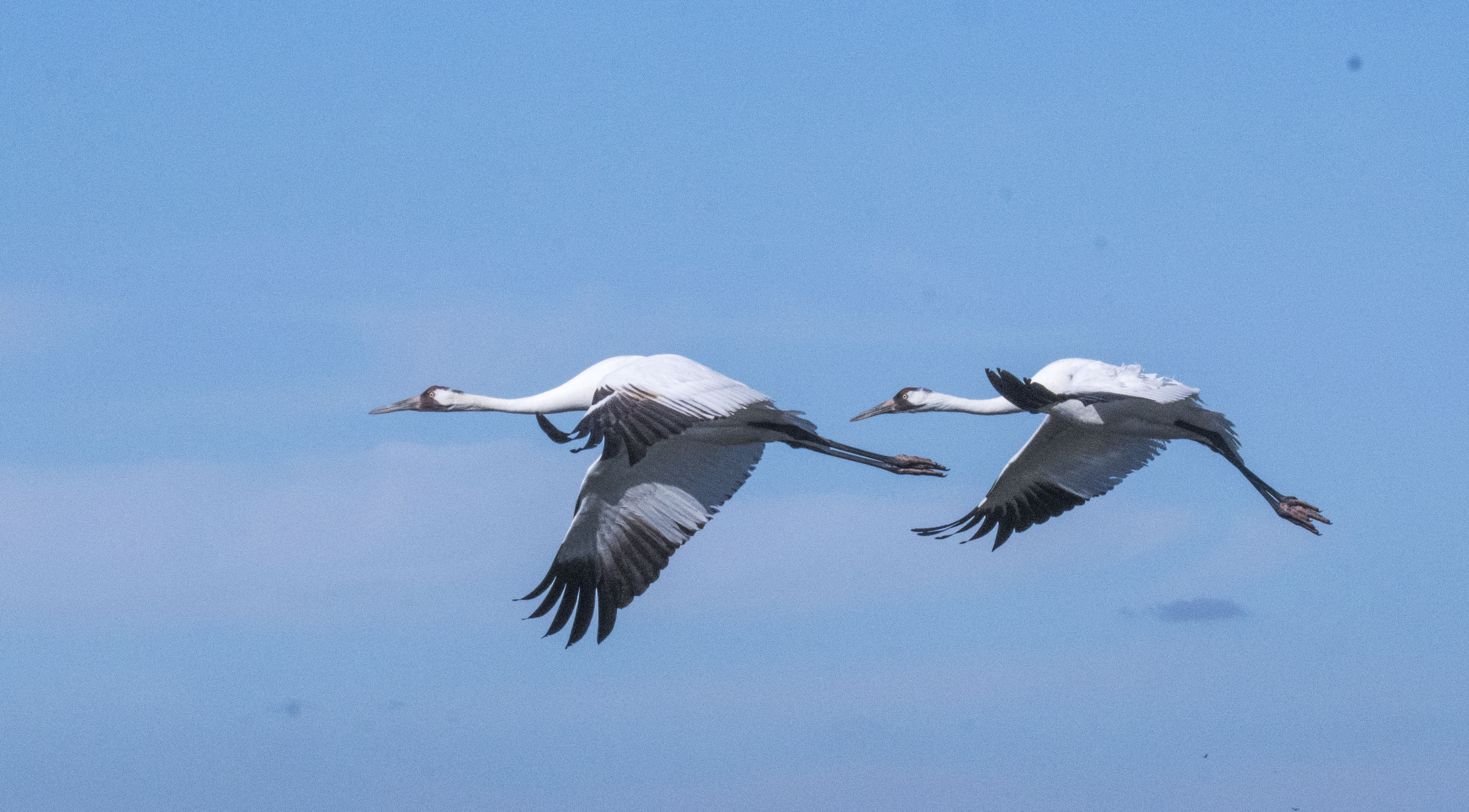 And they continued to walk closer toward the island shore, from one pothole to the next. He moved the boat further along to keep pace with the pair, and again pushed in to anchor the boat against the bank. The birds seemed oblivious to us, although I’m positive they weren’t. I was working the camera with a 150-600 zoom bringing my eye so close I could almost feel them breathe. Suddenly the whoopers stopped and appeared to be communicating. Using this as a clue I eased back the focal length of the zoom, and then, as if on cue, they lifted into the air to circle in front of us before flying away.
