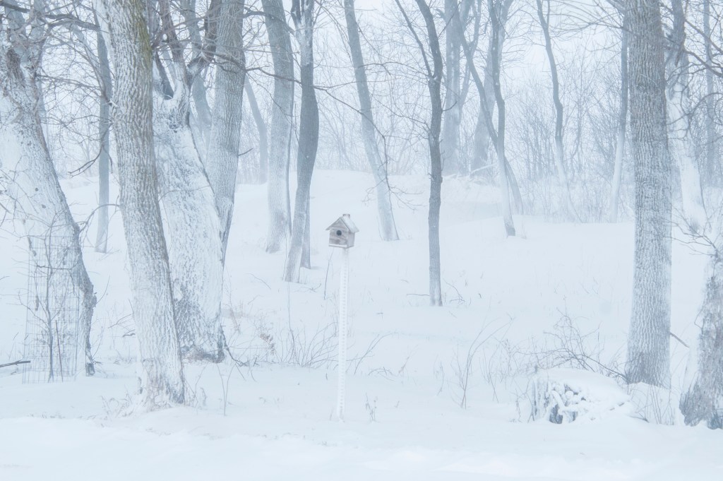 Much like the stately Bluestem, I now kneel cowardly to these winds of winter. Instead of braving the elements I’ll cuddle on the couch with Joe Pye with a book in front of a fire listening to the wind roar with a potentially deadly gusto. As the “blue hour” eases in I can barely see the line of trees across the road. Wind blown snow once again creates a haze now more bluish than white. Temperatures are once again forecast in the minus twenties.