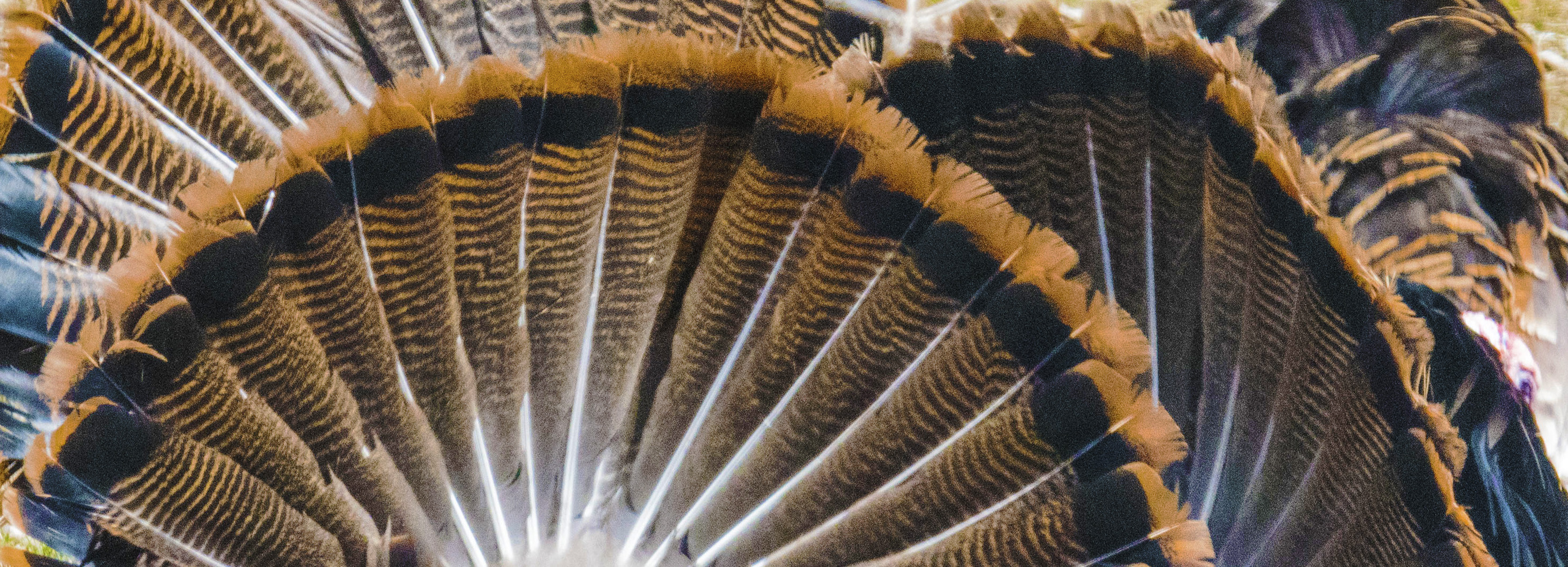 When I expressed my admiration of how the tom’s fluff themselves in their finery, he said, “It is impressive, especially if you’re bow hunting. They’ll fluff their feathers this full,” he whispered, opening his hands the width of a bushel basket, “while inside that fluff of feathers is a body like this.” Now his hands had narrowed to the width of a football. “There isn’t much to shoot at.” It’s that display of puffiness I was after with my camera.