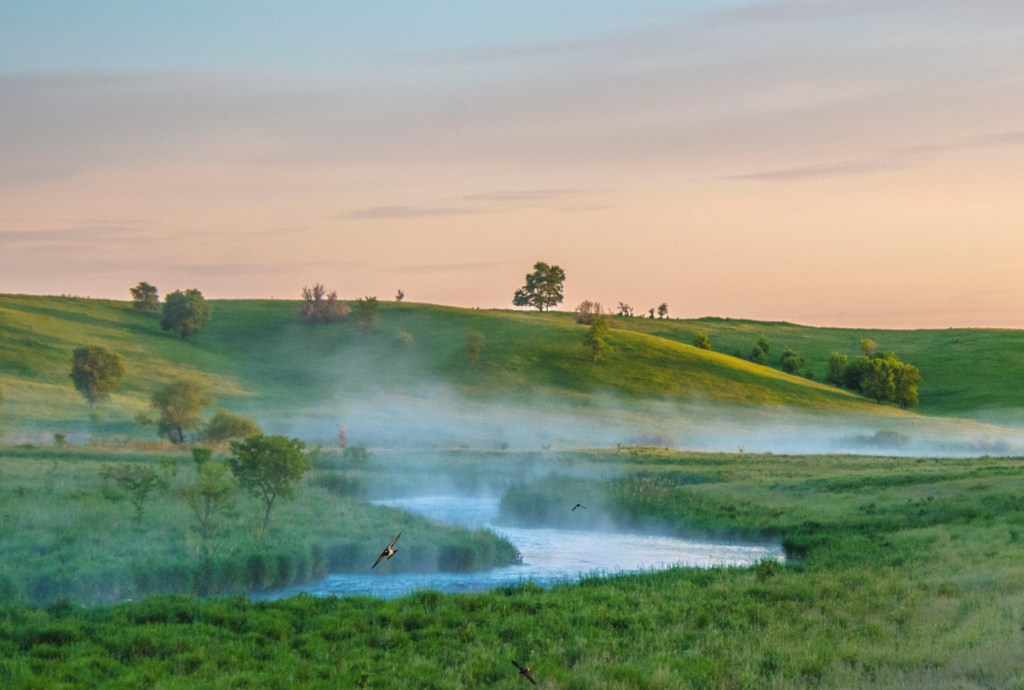 This was just a week after I rose at 5 a.m. to follow a tip of a swan family with a newly hatched brood of cygnets in a nearby wetland. I arrived just as the sun rose to capture them in a beautiful orange-ish glow spread across stilled waters. Then, as a bonus on the way home, I found a fog rising above a beautiful bend of Stony Creek just east of Ortonville. Although neither was of my home horizon, this was special nonetheless. Admittedly, sometimes these home horizons are invitations to promises beyond.