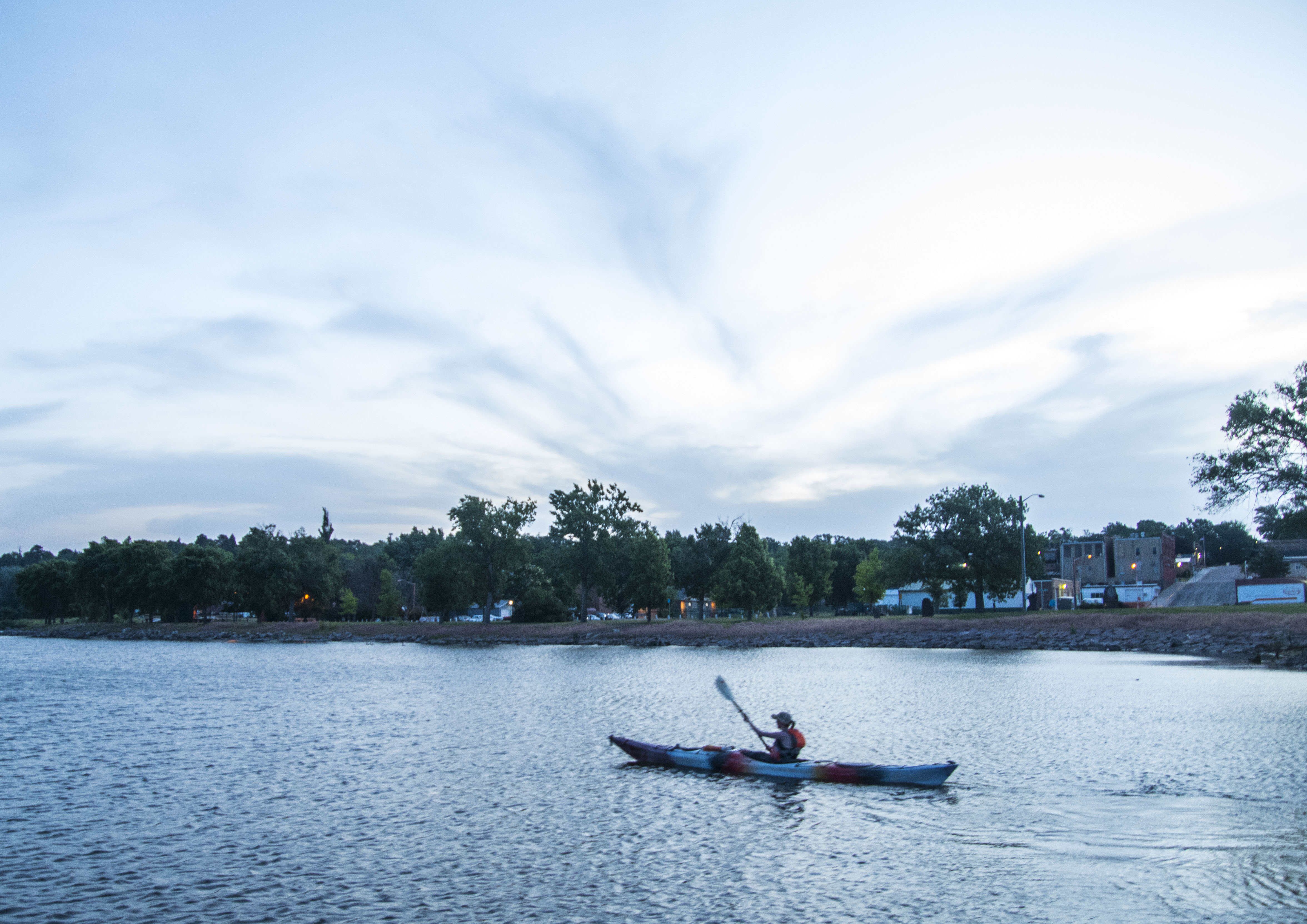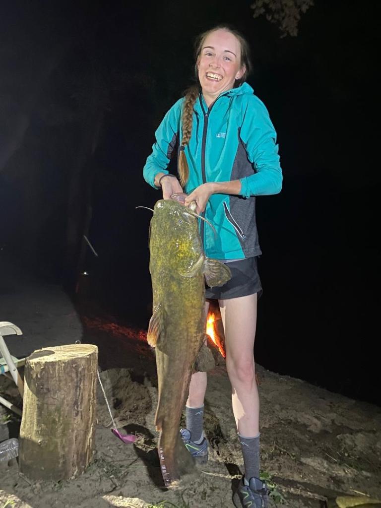 Like some who have paddled the route before her, she has found a friendly community along this first fourth of her paddle. Folks she calls “river angels.” One was a family who adopted her for two weeks during the excessive high waters, the mother of whom shared the same dietary allergy as Eklund so there were no food issues. There was also a group of five fishermen who inducted her into the “clan” complete with a heavy river rod and a hook baited with a bullhead that led to her catching a 20 pound flathead catfish. So, yes, she has stories and nice remembrances of many she has met along the way.