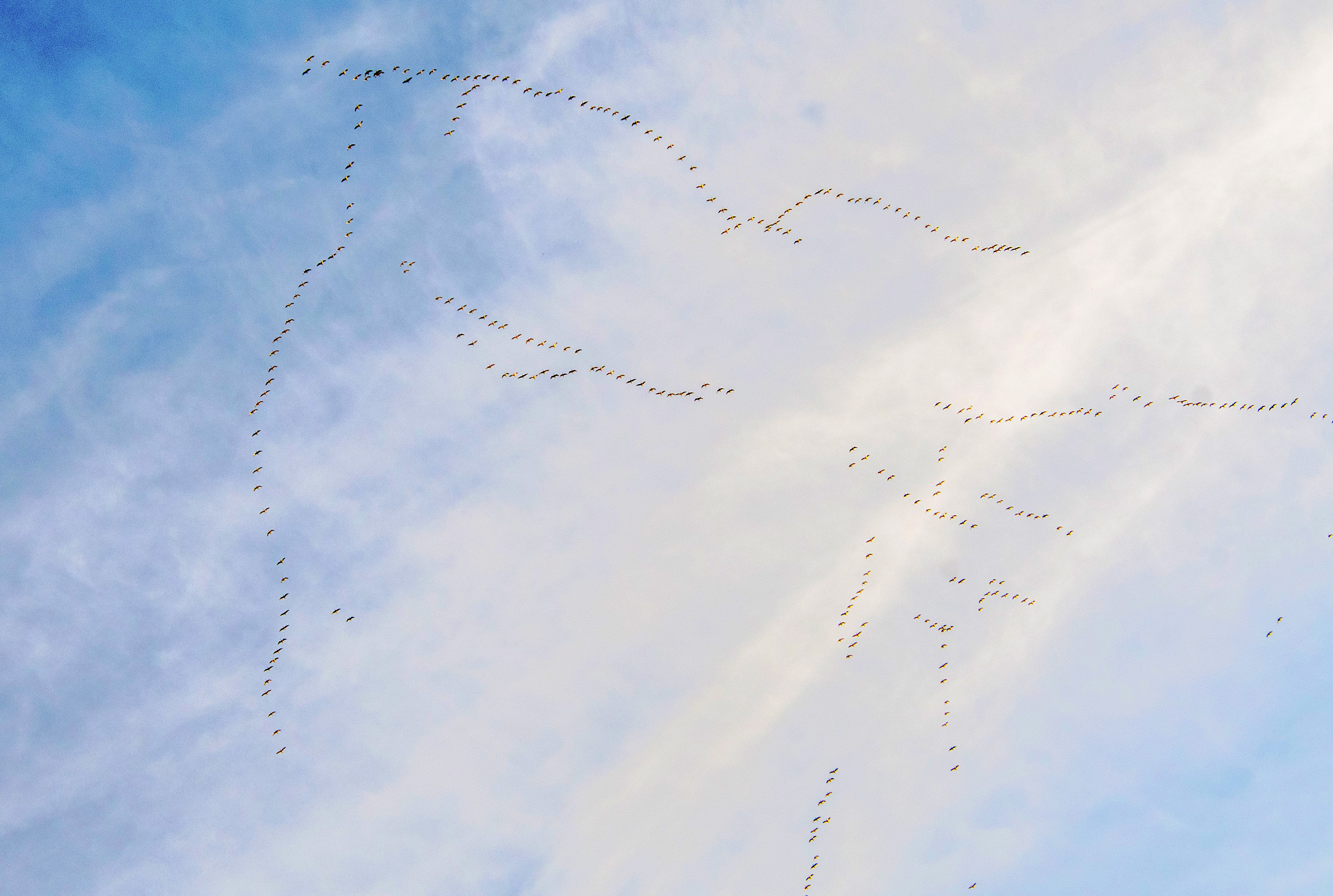 On the year they chose our nearby wetland I was up long before dawn and was busy off and on throughout the day as the birds took off for distant fields, moving from day break to sunset. For most of a week the haphazard skeins rose, returned, and rose again throughout the waking hours when suddenly the silence turned heavy one midmorning and didn’t return. It was a photographic dream.