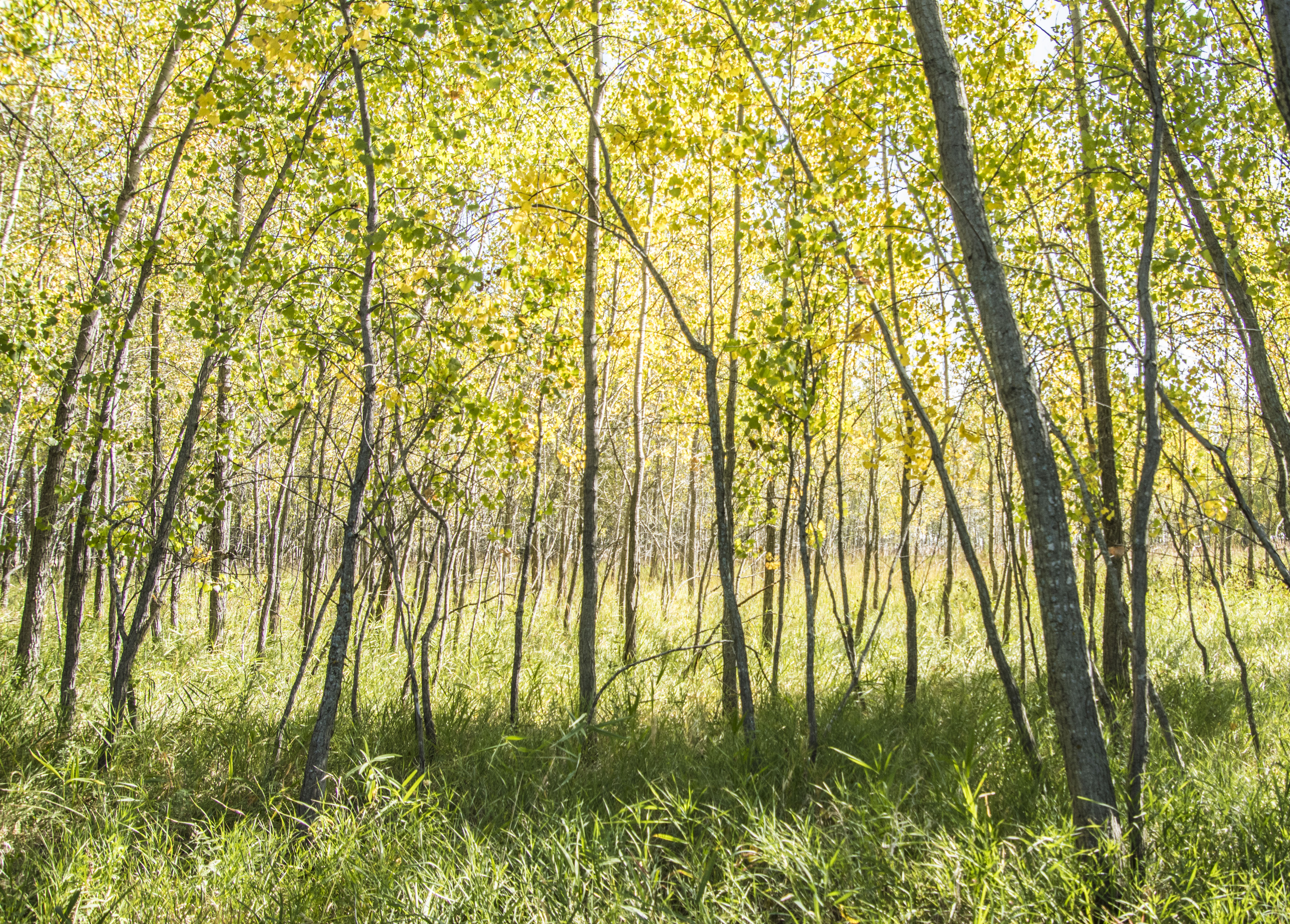 Here in Brent’s woods you feel a need of taking in a deep, natural breath to allow the surrounding nature to settle into higher sensory levels. Sound, for one, soothed the soul as bird songs joined the soft background music of the shimmering cottonwood leaves. Adding another layer of sensory appreciation was a soft woody scent from the nearby cottonwoods. Not quite apple buttery. A hint, perhaps. As we weaved our way back through the trees toward the pickup, Brent’s “forest” was holding its own here in the midst of an otherwise rather flat and nondescript prairie. He was correct. One’s spirits could be lifted here.