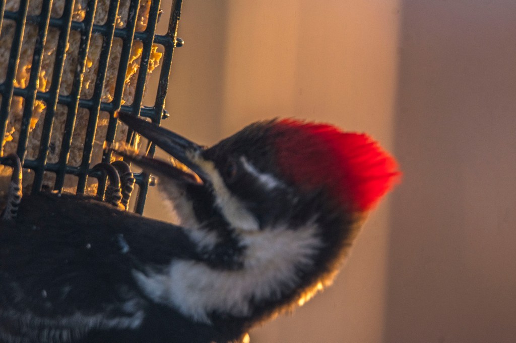 Perhaps they have already settled in since pleated are noted for their covert shyness. Our feeder bird is quite attentive, flying at the slightest sound. We’ve seen it numerous times since, either on a nearby tree or on the deck feeder where it will grasp and circle itself around the little cage of suet to peck away. Hopefully this is an omen, for according to legend pileated woodpeckers are said to be bearers of good fortune and luck, two wonderful attributes a person can always use.
