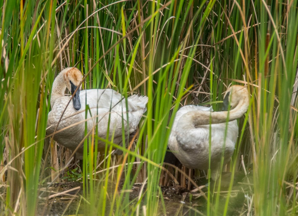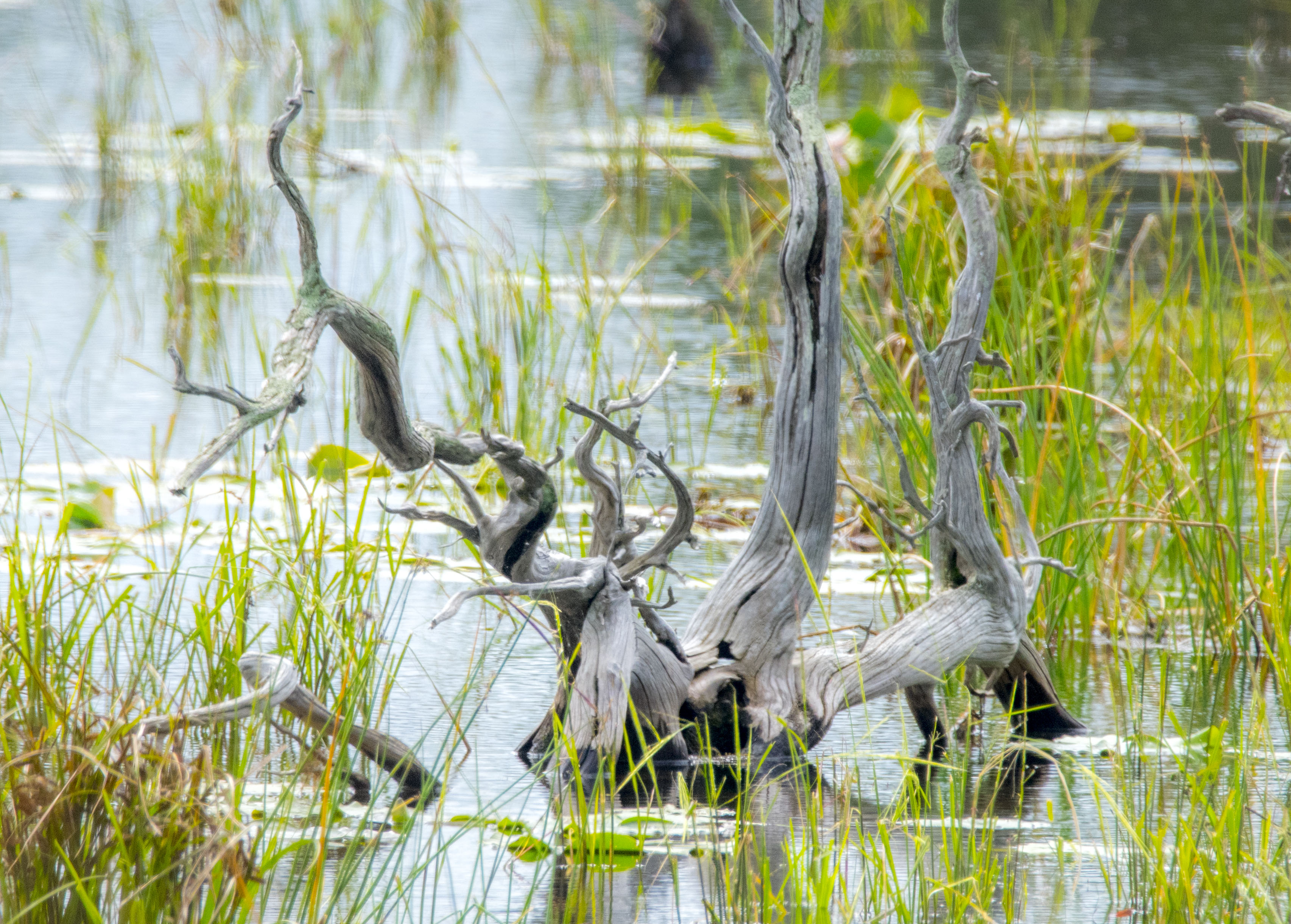 What we found was a lazy afternoon in the Refuge. Numerous swans at rest and preening in cattail hideaways. Resting cormorants in the skeletons of long dead trees sunning themselves to dryness. Kingfishers posed on woody spikes with watchful eyes. Long-beaked Green Herons poised for murder and mayhem. Beautiful wild flowers painting the adjacent prairies and glowing global teacups of white water lilies floating on the calm surfaces of the wetlands.