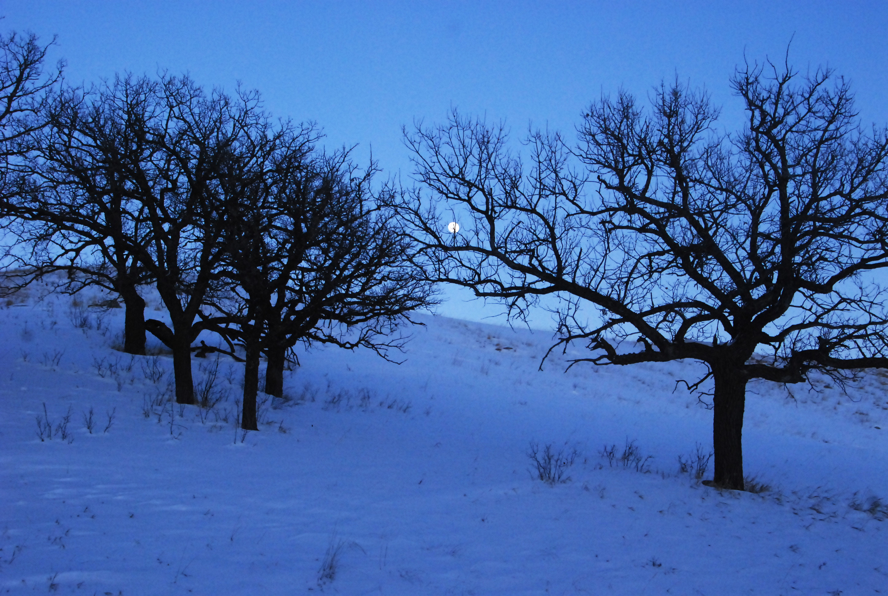 My creating an image on the celebration of light on the Solstice has continued ever since. Over the years there have been some anxious moments, for my initial intent was to in some way feature our dear Sol on the Solstice. That hasn’t always happened thanks to the increasing presence of cloudy skies, so it became more significant to feature light and hope more so than the actual sun. In the year of my retirement, which came with the passing of my wife, my image was made in the nearby Bonanza portion of Big Stone Lake State Park and featured the moon peeking through the hefty branches of a sturdy oak. The darkness of night more closely matched my feelings at the time, yet the light of the distant moon signified hope while the strong sturdy limbs of the surrounding oaks offered a sense of strength.